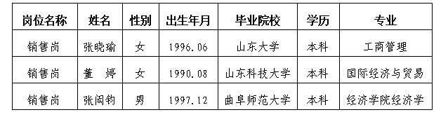 根据《山东汇金资产管理有限公司招聘公告》要求,经过笔试、面试等程序,拟录用3名同志,现公示如下: